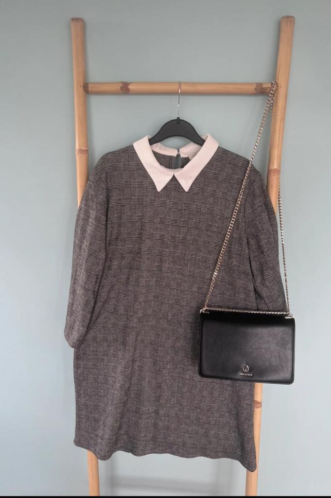 - Grijze jurk met witte kraag Janis & John maat LEen jurk die net even anders is. Grijze jurk met blokken en een witte kraag. Ook leuk te dragen met een lange ketting. Recht model en driekwart mouwen. Janis & john maat l. Zeer goede staat. #ZeerZo goed als nieuw Ophalen of Verzenden
