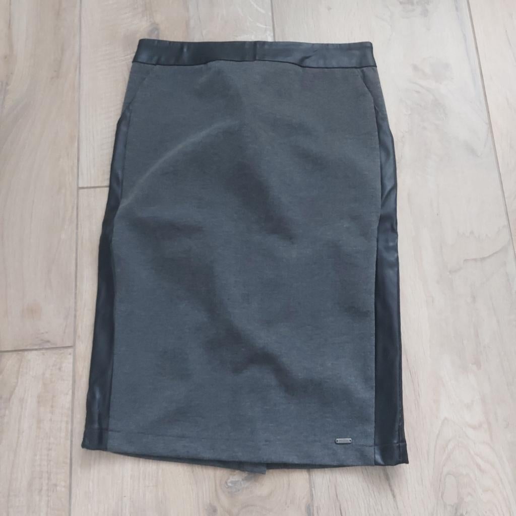 - Milla rok / kokerrok grijs met leer - maat 36Aan de bovenkant van het leer zie je wat oneffenheden. Op die plekken zie je waar de rok aan de knijper hing helaas. Rok zelf is niet heel veel gedragen.Zo goed als nieuw Ophalen of Verzenden