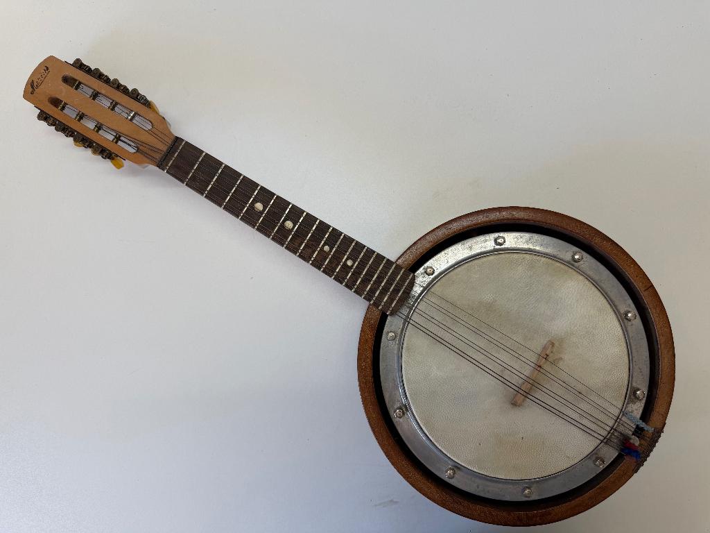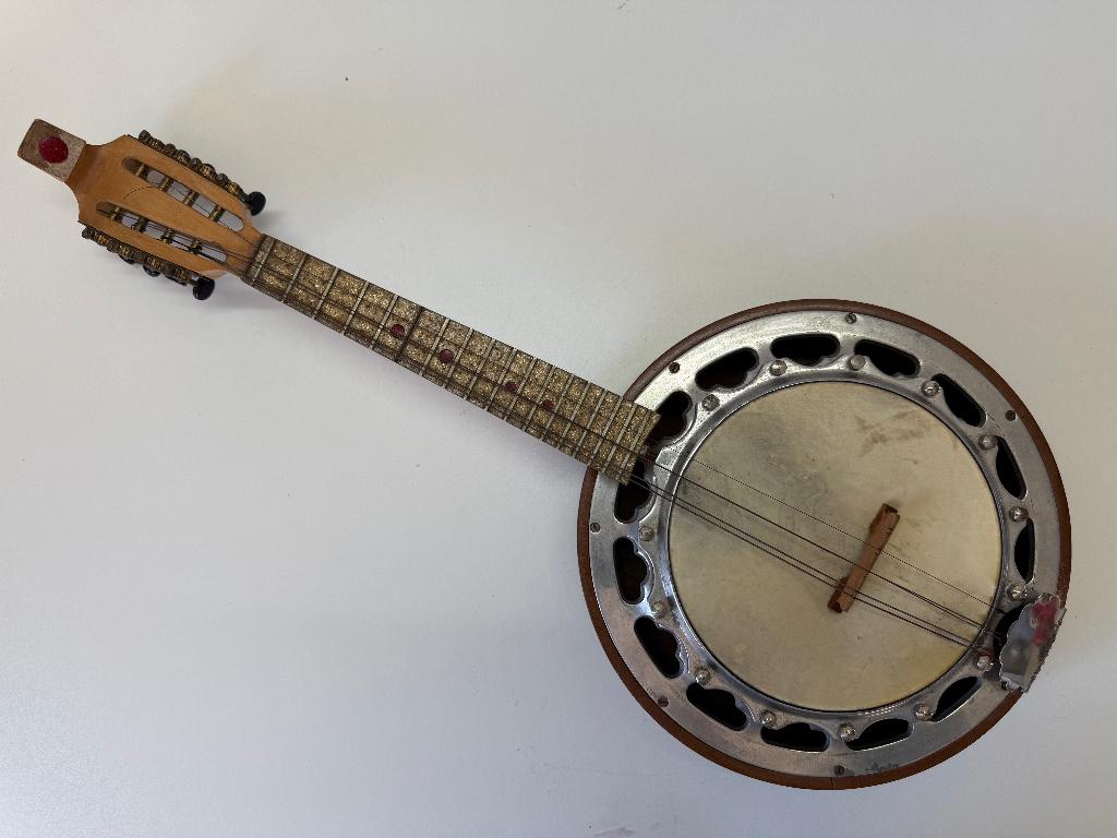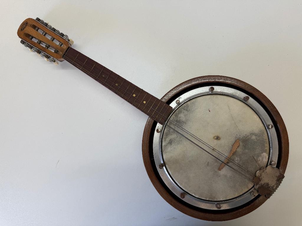 14 apr 26jacobRotterdam - Marpa BanjolineEen vintage banjoline, oftewel een kruising tussen een banjo en een mandoline. Gestemd als een mandoline met 8 snaren maar met de klankkast van een banjo met een vel erop. Het merk is marpa, een duitsGebruikt Ophalen