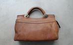 Prachtig mooi en gaaf dames tasje van leer, lederen tasje bruin / blauw van kleur , met metalen klip in sluiting en verstelbaar hengsel ook van leer, binnenzijde gevoerd en met vakje met ritssluiting, afm 23 x 17 cm, leer, made in italie indruk op de...