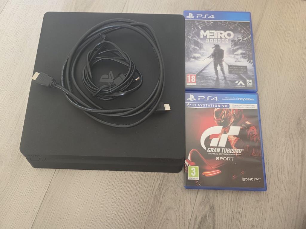 - PlayStation 4 Slim met1 controler, 2 games en kabelsTe koop aangeboden: een playstation 4 slim console in goede staat, inclusief alle benodigde kabels (hdmi en stroomkabel). De set wordt geleverd met twee populaire games: metro exodus en gran turismo sZo goed als nieuw Ophalen