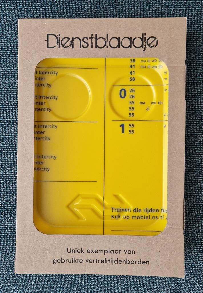 9 jan 26JokeBaarn - Uniek NS Dienstblaadje - Vertrektijdenbord UtrechtUniek dienstblaadje van 20 x 25 cm, afkomstig van een gebruikt vertrektijdenbord van de nederlandse spoorwegen. Dit specifieke exemplaar toont vertrektijden voor intercity's en sprinters vanuit utNieuw Ophalen of Verzenden