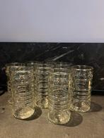 Vintage glazen retro glas glaasje limonade meerdere verschillende, vrolijke, gezellige, zomerse glazen in verschillende maten. Gedecoreerd met tulpen, fruit, beestje en/of bloemen aan de buitenkant. #Frisdrankglas #sapglas #limonadeglas #waterglas #d...