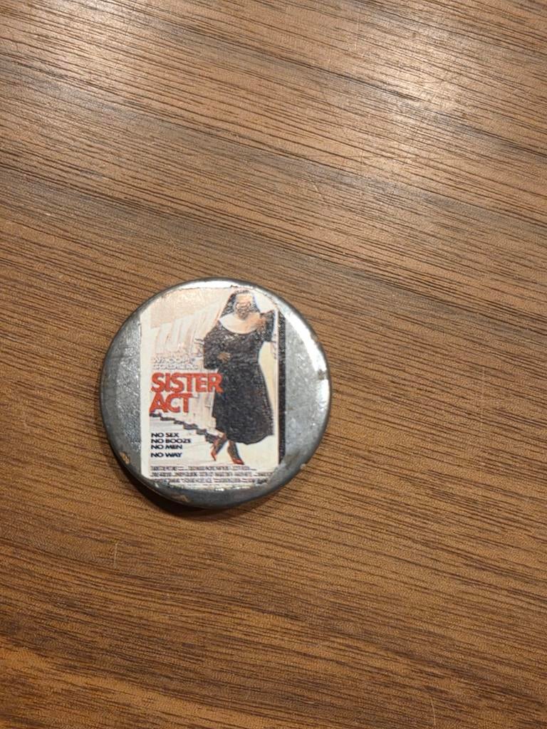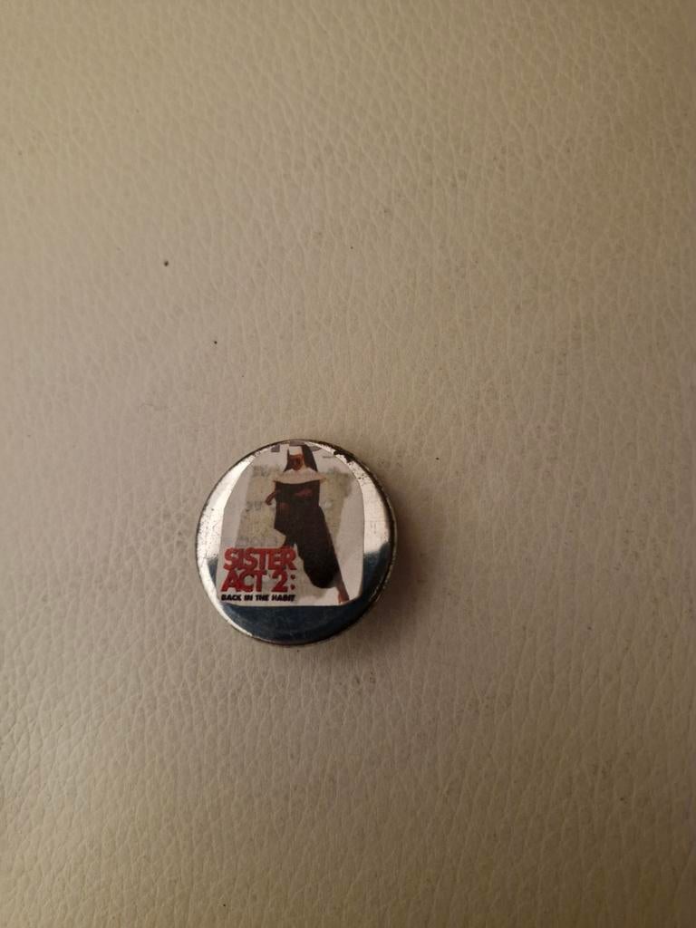 2 apr 26SearchZwijndrecht - 056 Sister Act 2 Film buttonEen button van de film sister act 2: back in the habit. De button is rond en heeft een afbeelding van een non met de titel van de film erop. De button is gebruikt.Ophalen of Verzenden