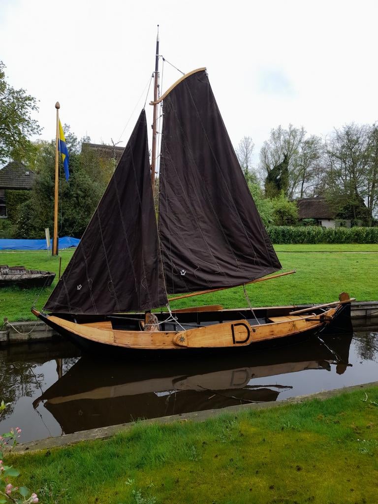 - Beulakermeer punter met zgan zeilenPrachtig giethoornse authentieke punter met gaffeltuig tuig en koperen beslag alle hout is 6x gelakt . De bodem en zijkanten zijn aan de buitenkant van polyester. Is dus nooit lek en vergt weinig ondeOphalen