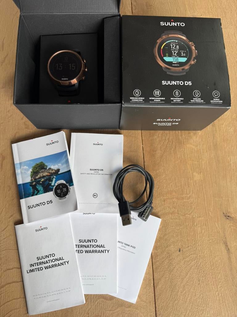 9 apr 26PatrickPurmerend - Suunto D5 Copper incl. Suunto Tank PodNog geen jaar oud, dus nog ruim een jaar garantie.. Horloge heeft slechts een 15-tal duiken mee gemaakt, is nog in nieuwstaat. Tank pod is er later bijgekocht. Bonnen aanwezig incl. Verpakkingen zoalsZo goed als nieuw Ophalen
