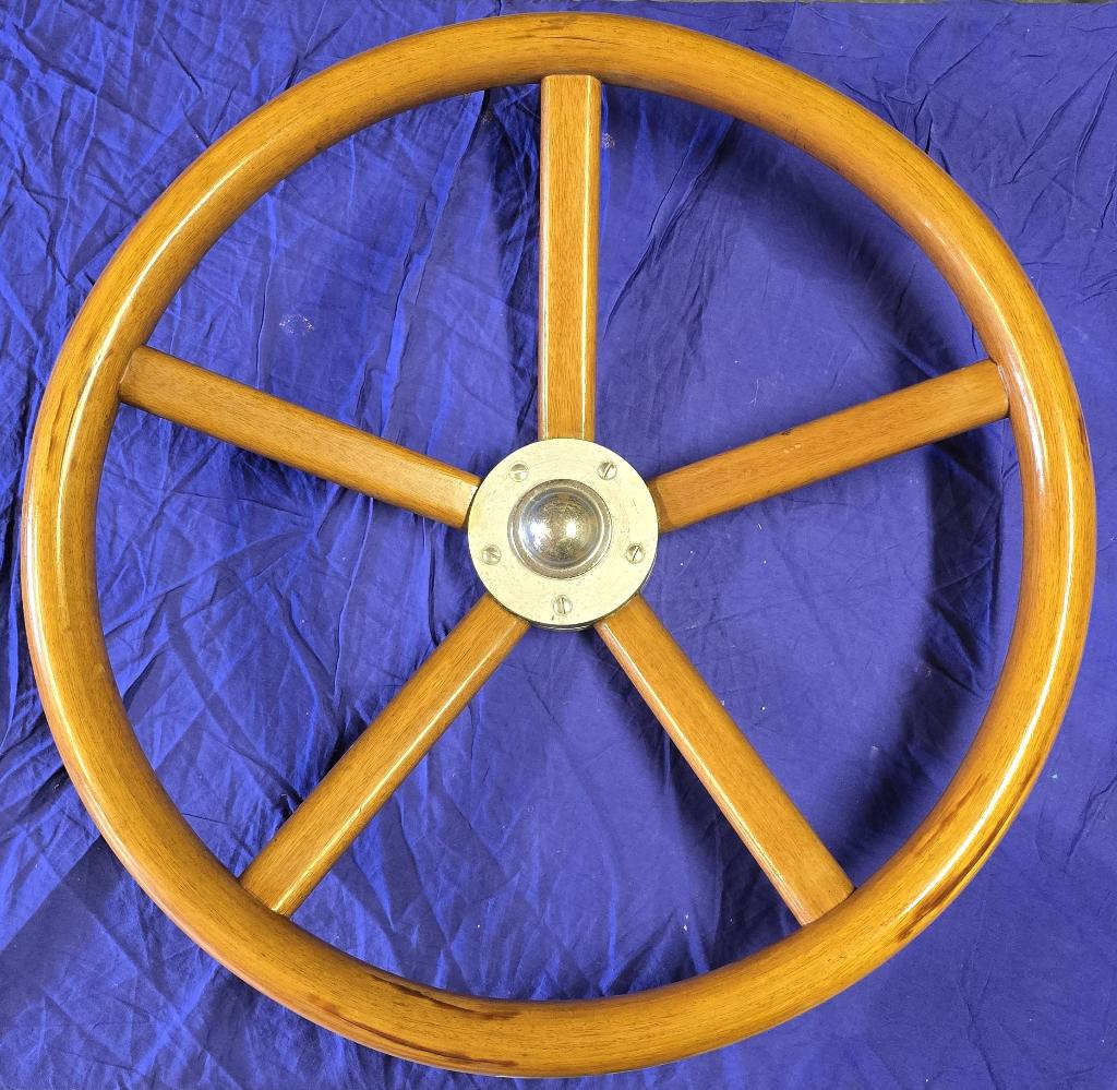 - Teakhouten stuurwielZeer sterk teakhouten 5 spaaks stuurwiel 60 cm diameter met dikke hoepel (ovaal 43 x 37 mm ). Voor 1" conus (jefa, whitlock, lewmar). Via losse conus bus is er eventueel een andere conus in te zeGebruikt Ophalen of Verzenden