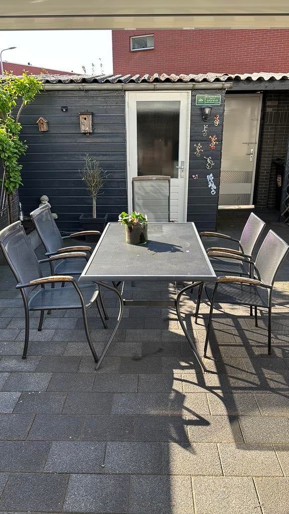 Aluminium tuinset met glazen tafel en 4 stoelenGratis