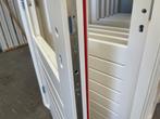 Hardhouten buitendeur / achterdeur inclusief kozijn. Deur opent naar buiten en is rechtsdraaiend. Afmetingen: kozijn cm 103,5×245×11,5 (bxhxd) deur 92,7×234×5,6 cm (bxhxd), met een borstwering van 77,