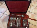 Prachtig jugendstil 49 delig zwillingswerk bestekset, zeldzaam parelrand model, stijlvol en perfect feestelijke gelegenheden. De set is zwaar verzilverd gemerkt 90, nauwelijks gebruikt. 12 Tafelmessen, 12 tafelvorken, 12 tafellepels, 12 koffielepels,...