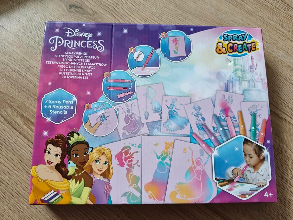 - Disney Princess blaasstiftenCreëer magische kunstwerken met deze disney princess spray & create blaasstiften set! De set bevat 7 blaasstiften en 6 herbruikbare sjablonen met verschillende disney prinsessen. Perfect voor urenNieuw Ophalen