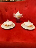 Thomas bavaria,b.pollmann arnhem,antieke porseleinen suikerpot en 2 botervloten,suikerpot doorsnee 6 cm,vandoor t/m oor 16 cm, hoogte 11 cm,botervloot,doorsnee schotel 17 cm,hoogte incl. Deksel 10 cm,