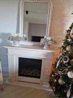Schouw van franse kalksteen, stijvol en authentiek model. Deze schouw staat in de showroom, wordt in onderdelen gedemonteerd, bestaat uit bovenplaat, bovenfries, 2 staanders en eventueel een vloerplaat. Afmeting h x b x d = 126 x 158 x 46 cm het binn...