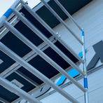 Zeer nette gebruikte aluminium rolsteiger, merk : skyworks, type : skyline, afmeting: 135 x 305 cm met veilige werkhoogte van 6,25 meter , met 2 werkplateaus ( 1 met luik ) , 4 nieuwe wielen ( dubbel