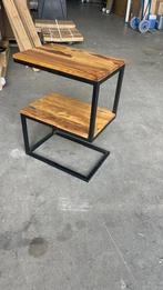 Bijzet tafel, metalen frame, houten sesam-blad. Prijs per stuk €45,- excl. Btw op=op