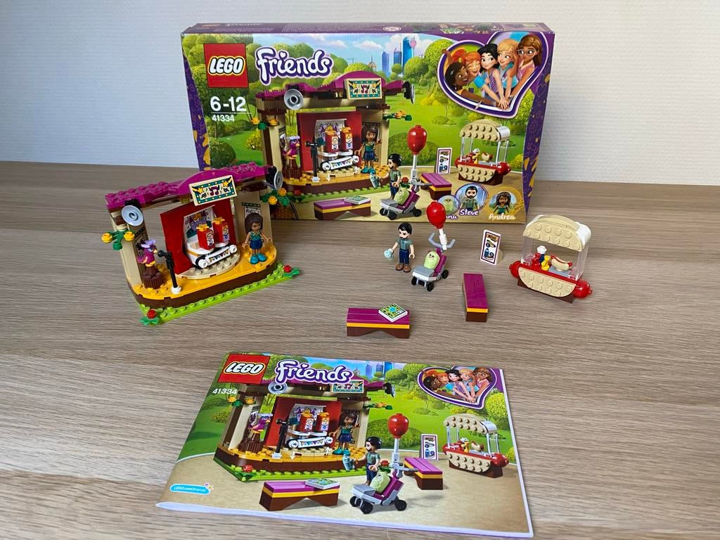 Ontdek de LEGO Friends 41334 set met Andrea's parkprestaties. Inclusief minifiguren en een podium voor optredens. Ideaal voor creatieve avonturen.