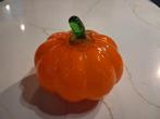 Leuke decoratieve pompoen. Oranje met groen. Diameter 9cm hoogte 7cm. Onbeschadigd.