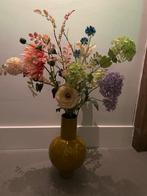 Zgn groot bloemstuk met kwaliteits zijden kunstbloemen van het merk silk-ka, silka, silkka. Alleen de dille tak kost nieuw al €67,= , deze is ingekort. Compleet incl vaas, op te halen voor €
