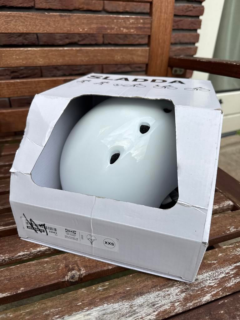 - IKEA SLADDA fietshelm wit XXSEen witte ikea sladda helm in maat xxs. De helm zit nog in de originele doos. Geschikt voor een hoofdomtrek van 48-51 cm.Nieuw Ophalen of Verzenden