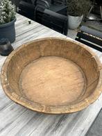 Een prachtige grote oude olijfbak/schaal! Een mooi item, landelijk, sober, stoer!! Leuk met mosbollen, toef, groot windlicht, kruik enz. De doorsnee vd houten schaal is 51 cm. We hebben 2 olijfbakke