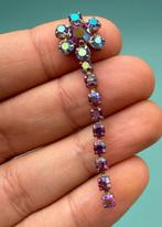 Complete, nieuwe blue gold-set voor dames. Bestaat uit een horloge met rechthoekige gouden kast, blauwe wijzerplaat en romeinse cijfers. Inclusief bijpassende oorbellen met blauwe stenen, ketting met
