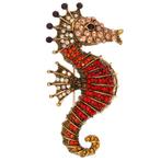 Set van twee vintage broches uit spanje. De ene broche is in de vorm van een zeepaardje, 5,5 cm groot. De andere broche is een vli
