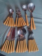 Complete vintage bestekset met opvallende gele handvatten. De set bevat messen, vorken, lepels en opscheplepels. Perfect voor een retro diner of als verzamelobject. In goede staat. Ophalen in diepenhe