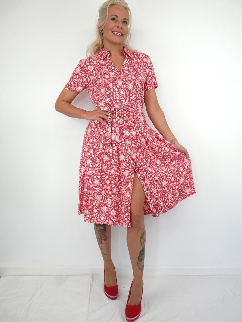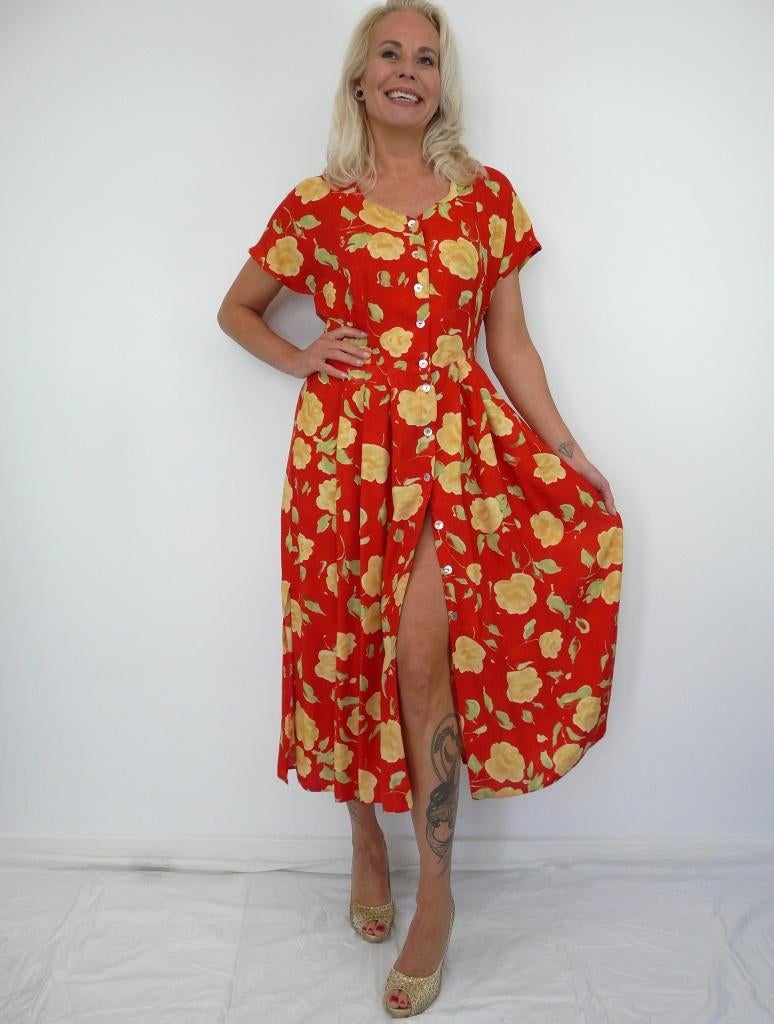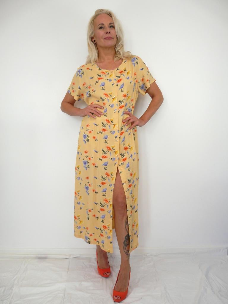 *Abfab Vintage Gele Katoenen Doorknoop Jurk M*
