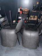 Set van twee grijze eetkamerstoelen. De stoelen hebben een modern design en zijn bekleed met een comfortabele stof. Ze zijn in goe
