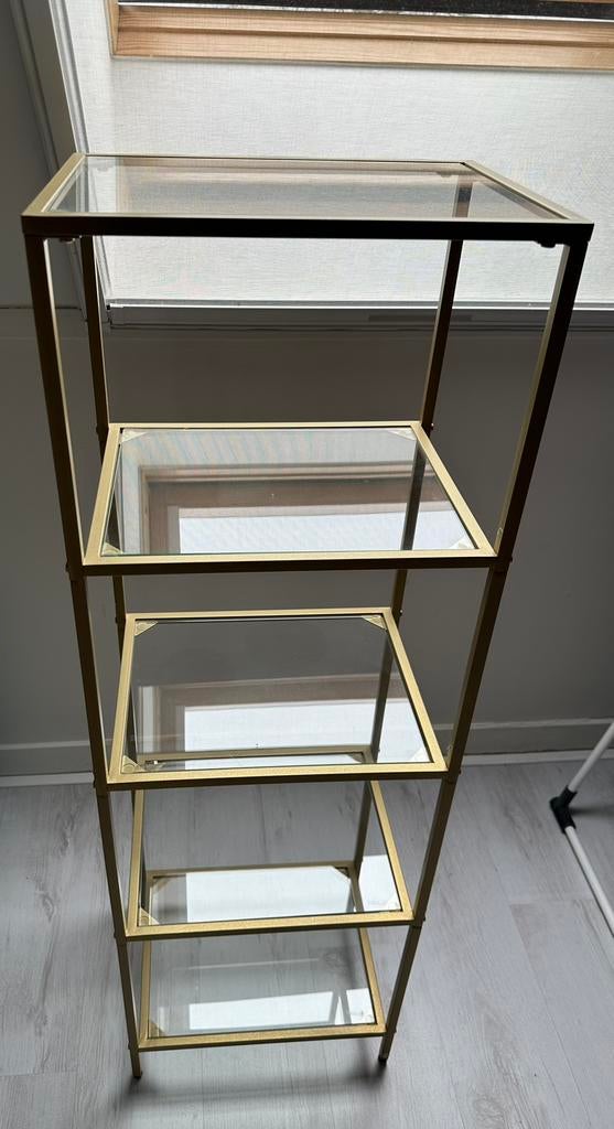 Vasagle rekeenheid, 5-verdiepingen opstapplank, smalle glazen plank voor slaapkamer, badkamer, thuiskantoor, gehard glas, stalen frame, goudkleur 40x30x124,50 cm (afmetingen zijn op de laatste foto teZo goed als nieuw Ophalen