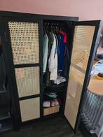 Dit moderne kledingrek is een stijlvolle en praktische toevoeging aan elke slaapkamer of hal. Het rek is gemaakt van stevig zwart metaal en voorzien van meerdere houten planken, ideaal voor het opbergZo goed als nieuw Ophalen of Verzenden
