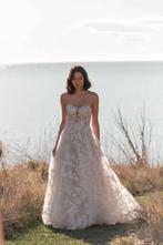 Witte trouwjurk te koop (nieuwprijs = €2500) maat: 34/36 gemaakt voor een vrouw van 172 cm (met korte hakken) lange sleep, in