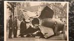 Oude kaart , sepia, kartondik, ongelopen van vliegende bom v 2 (tekst flying bomb v 2 ) foto stevens haarlem uitg john m. Allis met militairen links (onbekend welke natie, canadees?) Omgezoomd op ins