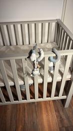 Mooie box aangeboden in de kleur licht grijs/groen. Is alleen voor bij opa en oma gebruikt bij 1 kindje. Inclusief extra dik matra