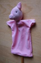 Poppenkastpop: varken. Het varken is gemaakt van nicky velours en de kop is gevuld met wol.