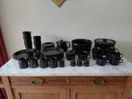 Verzameling servies arabia kilta zwart van de volgende onderdelen: 1 pan (12 cm hoog, 20 cm diameter) 1 pan met deksel (12 cm hoog, 20 cm diameter) 3 dinerborden (23 cm diameter) 7 ontbijtborden (19 c