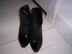 Enkellaarsjes lak/leer, ook van binnen leer, met rits, maat 40, hakhoogte 10 cm, zijn gedragen maar kunnen nog een ronde mee.