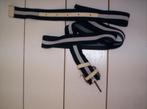 Ceintuur van pieces blauw/wit, dubbel te dragen, size 90, elastiek, afgewerkt met leer, zgan.