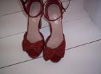 Pumps van gorgeous, roestbruin, maat 38, lak/suede, met strik en enkelbandje, hakhoogte 12 cm, enkel een paar modeshows met gelopen dus zgan.