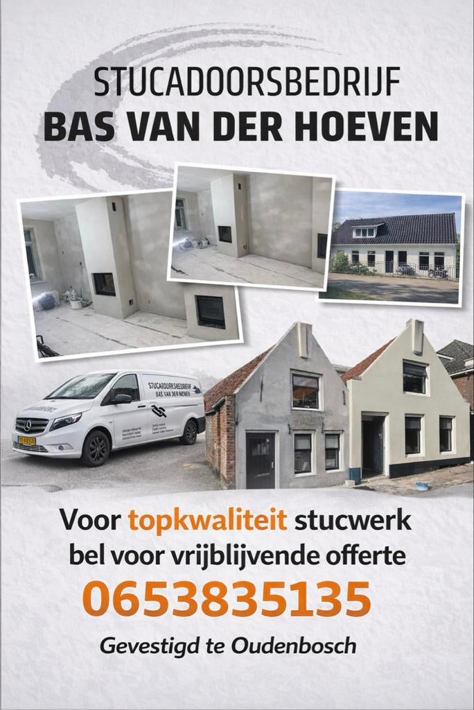 Bent u op zoek naar een betrouwbare vakman voor perfect afgewerkte wanden en plafonds? Stucadoorsbedrijf bas van der hoeven staat voor kwaliteit, strakke afwerking en duidelijke afspraken. ✔ Glad plei