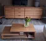 Mooie en praktische salontafel van xooon, model piura. De tafel is gemaakt van massief hout en staat op handige wielen, waardoor hij gemakkelijk te verplaatsen is. Met zijn afmetingen van 120 x 60 cm