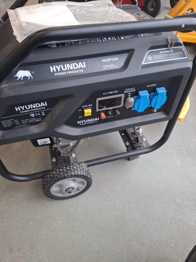 Hyundai hhd 35n stroom aggregaat 7 pk 4 takt benzine motor 3.2 Kva continu vermogen 3.8 Kva piek 2 x 230v aansluiting wielstel eur 1090,- incl btw