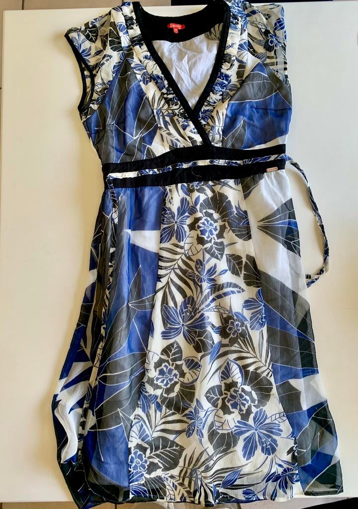 Heel mooi blazerjasje met 45% linnen in spijkerjas look, 40/42. Het valt iets kleiner uit, vandaar 40/42. Twee insteek zakken , donkerblauw tot zwarte kleur. Van oksel tot oksel 55 cm, het rekt nog ieZo goed als nieuw Ophalen of Verzenden