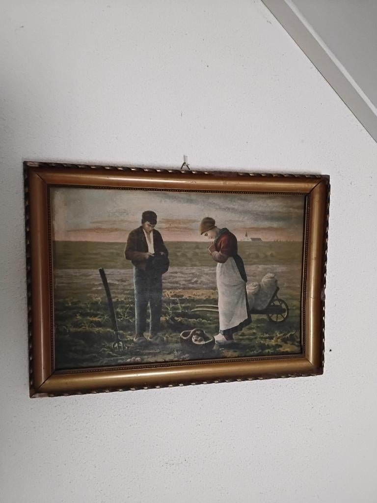 Te koop een oud schilderij van het angeles , bidden op het land met aardappelen