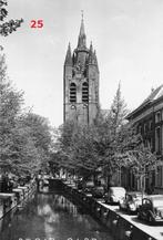 Ansichtkaart van de oude jan kerk in delft. Op de kade diverse auto's: o.a. Dkw, citroën traction, morris minor. Verzonden in