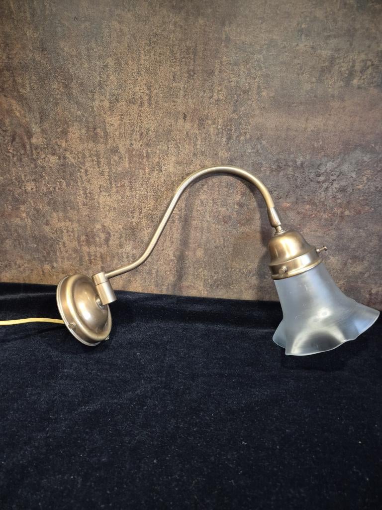 Vintage - bureaulamp - leeslamp - aluminium - buigstang - jaren 50. Mooie bureaulamp/leeslamp met buigstang, gemaakt van aluminium. Komt uit de jaren '50 van de vorige eeuw, heeft gebruikssporen eGebruikt Ophalen of Verzenden