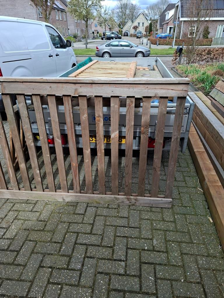 Nieuwe, zeer luxe picknicktafels van douglas hout, 2 meter lang. Ze zijn nog eenvoudig in elkaar te zetten met slotbouten. Normale prijs €550, nu voor slechts €300! Er zijn nog 4 op voorraadNieuw Ophalen of Verzenden