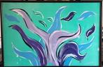 Wegens opheffing kunstuitleen, collectie abstracte schilderijen en houten lijsten aangeboden, lijsten zijn 65x95 (zwart gelakte ho