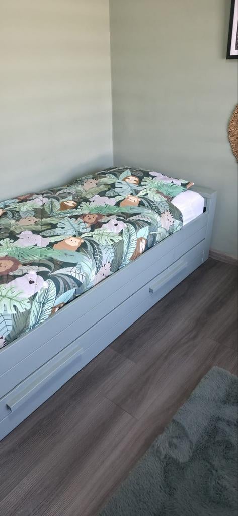 Een 1-persoonsbed van het merk woood dennis. Het bed is gebruikt en heeft een nieuw likje verf nodig. Er zit een lade onder het bed voor opbergruimte of eventueel een matras. Afmeting bed: 219x53x95 mGebruikt Ophalen Eenpersoons