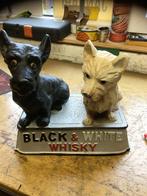 Vintage black & white whisky beeldje van twee schotse terriërs, een zwarte en een witte. Leuk decoratief item voor de whisky liefhebber of verzamelaar van reclame objecten.of voor in de mancave